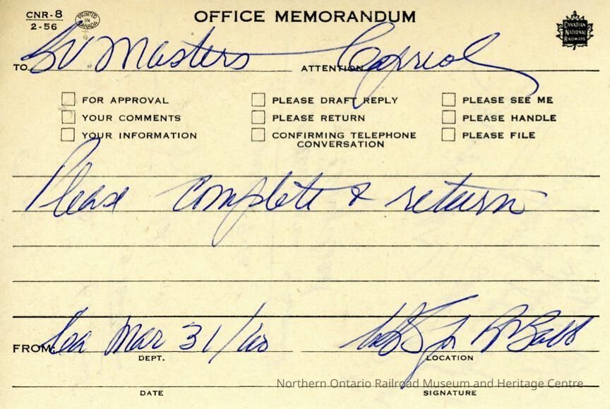 Document, CNR Office Memorandum School Car.Collection