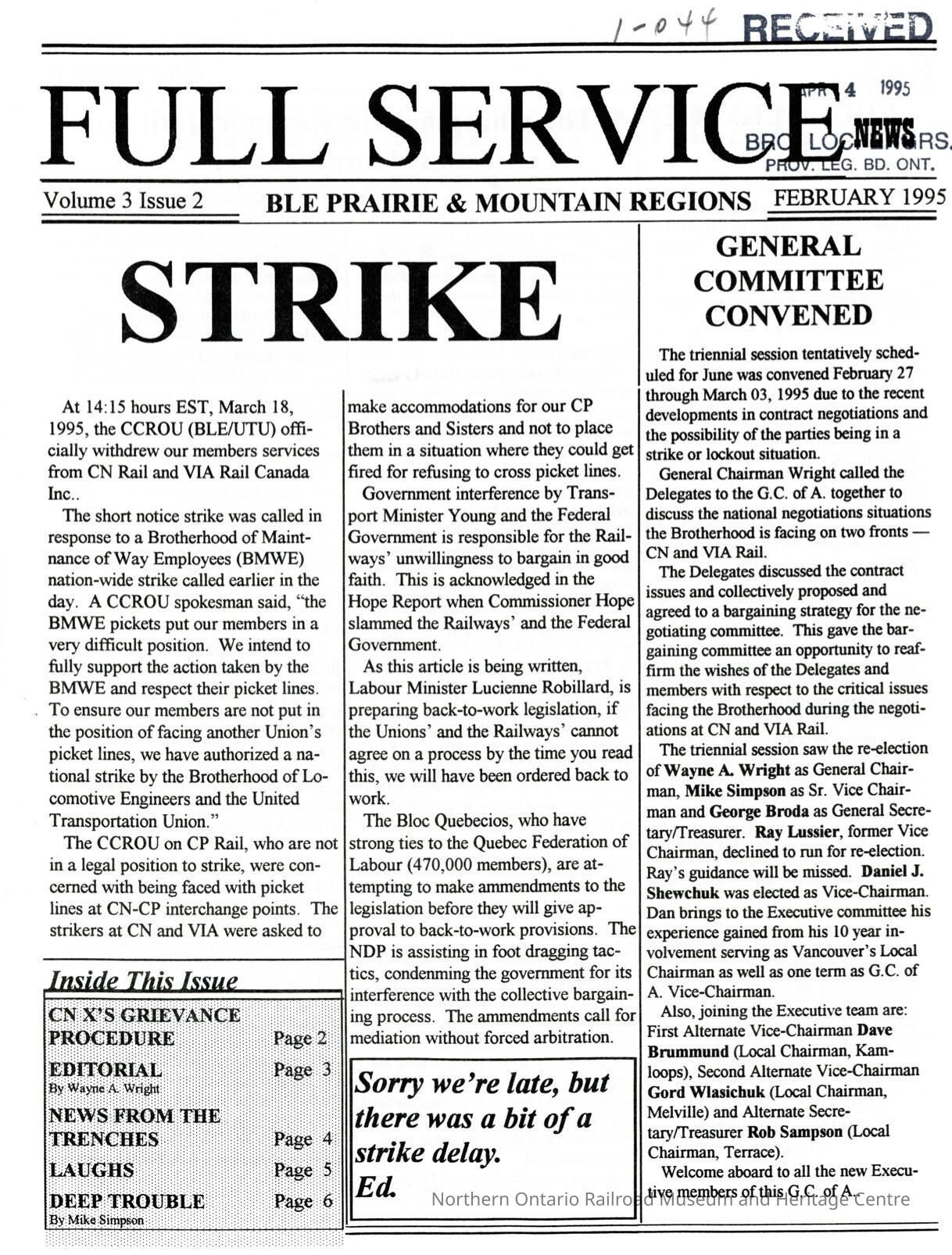 Document, Full Service Volume 3 Issue 2 Febuary 1995.Collection