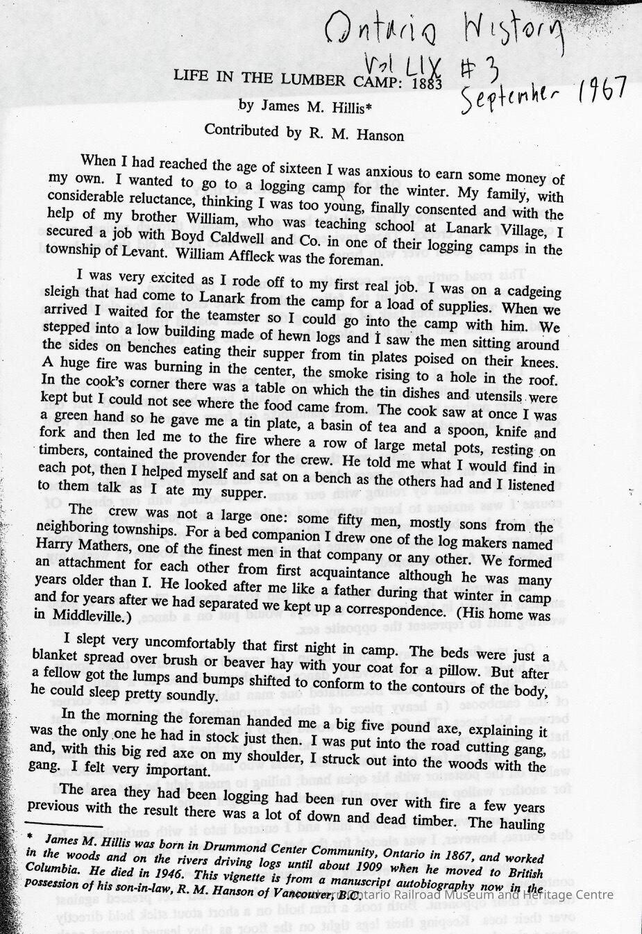 Document, "Life in the Lumber Camp".Collection