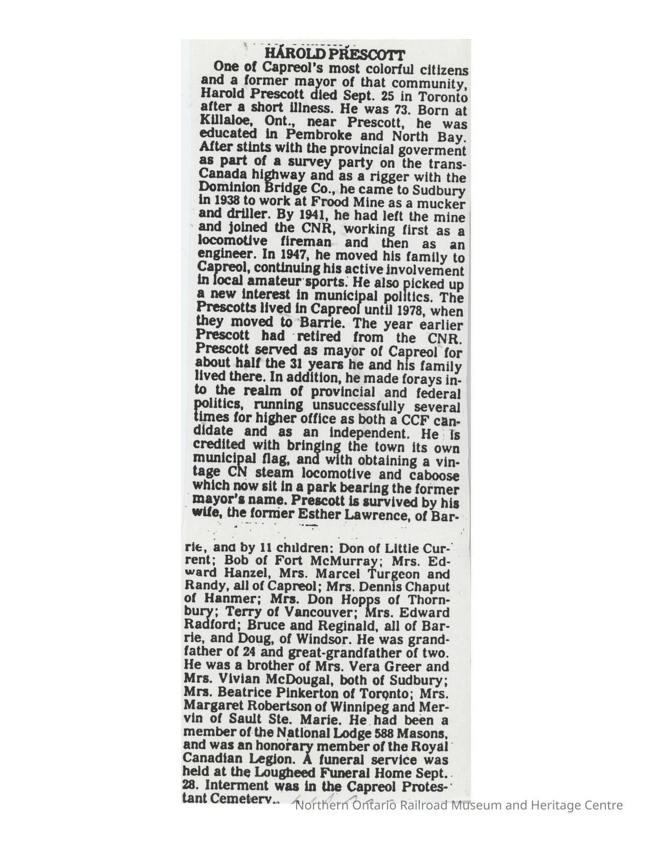 Capreol, OntarioDate