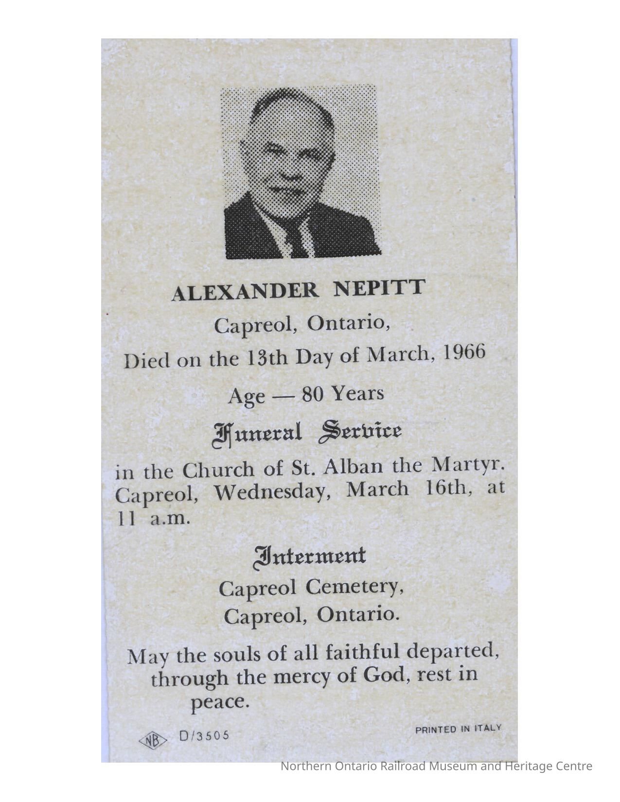 Document, Obituary, Alexander Nepitt.Collection