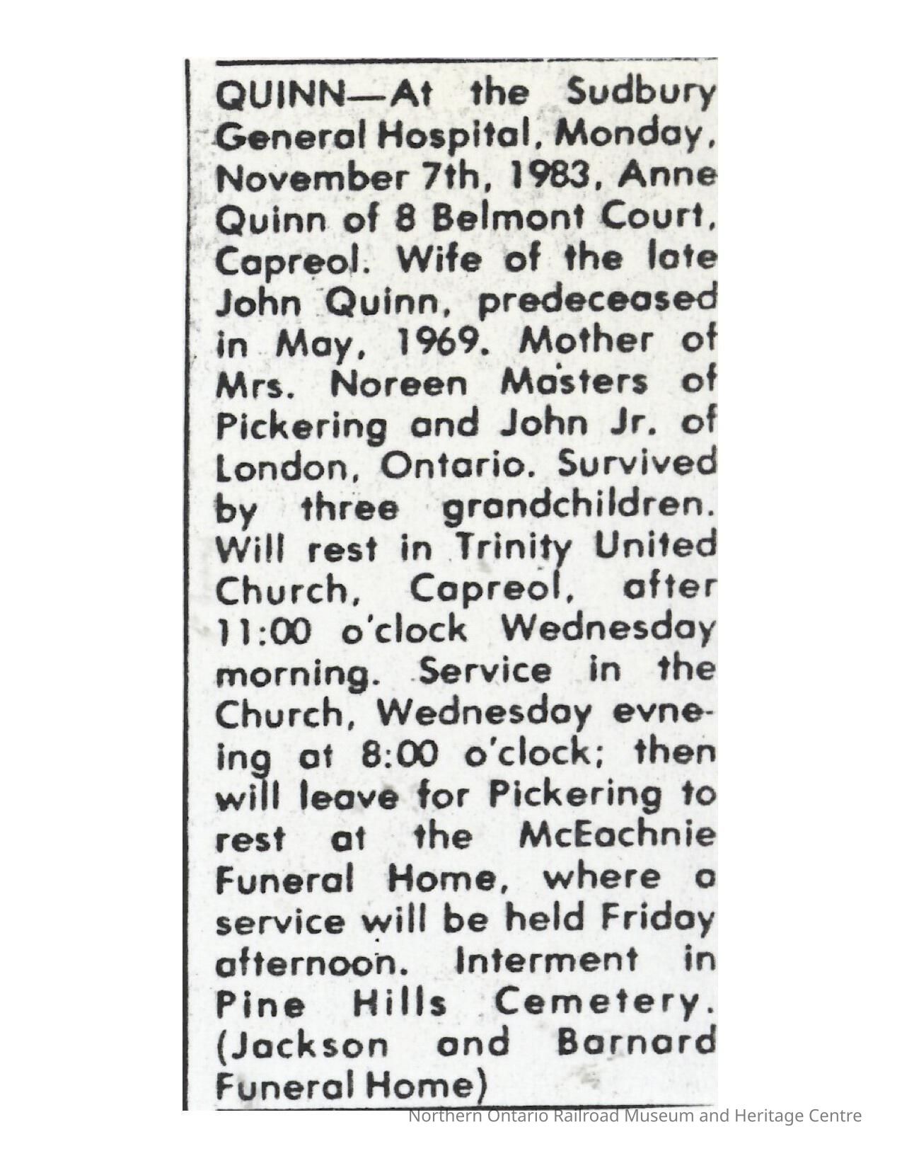 Document, Obituary, Anne Quinn.Collection