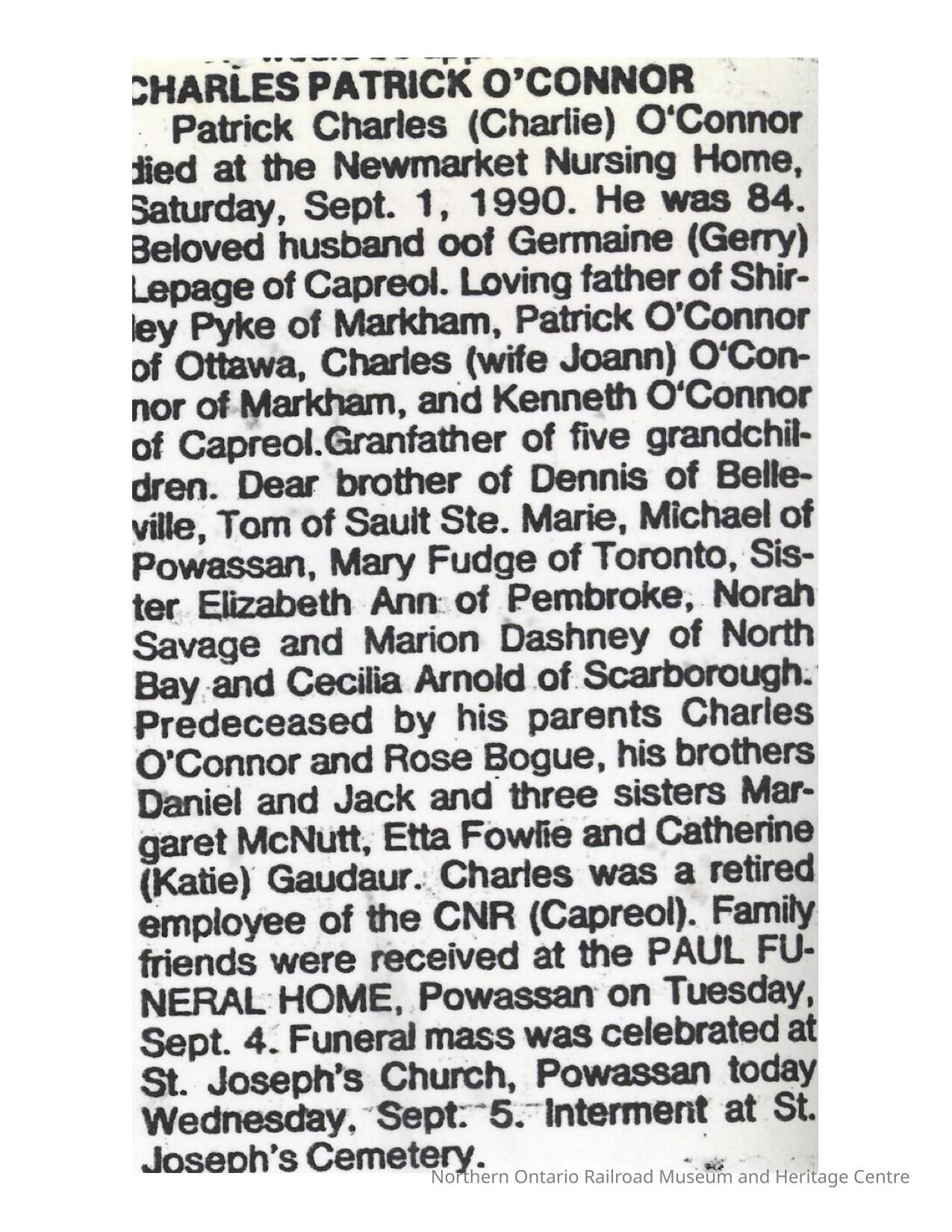 Document, Obituary, Charles Patrick O'Connor.Collection