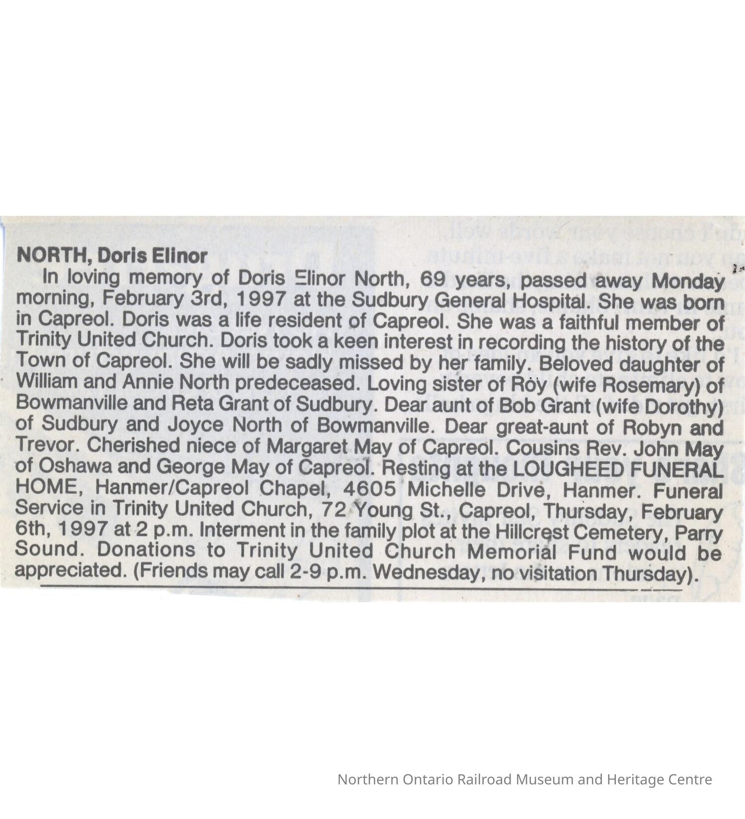 Document, Obituary, Doris Elinor North.Collection
