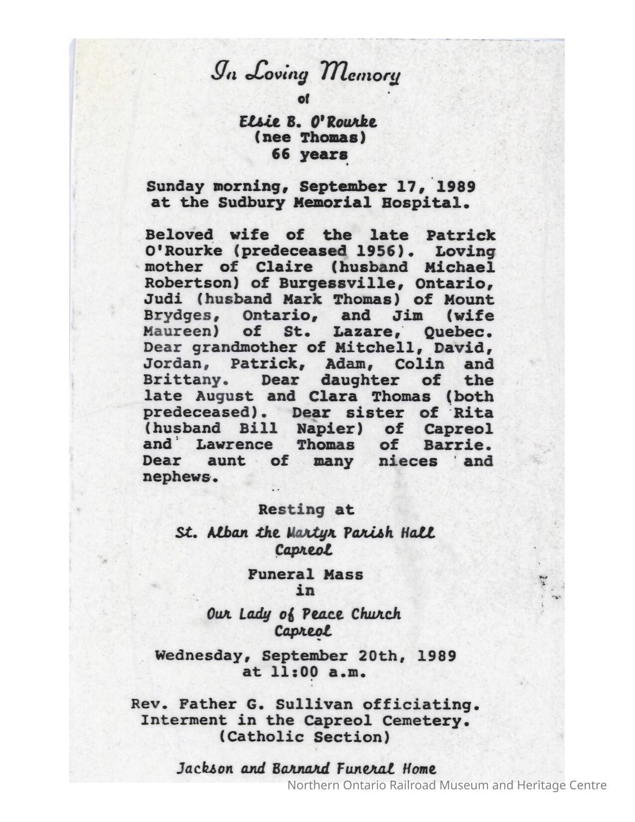 Document, Obituary, Ellie B. O'Rourke.Collection