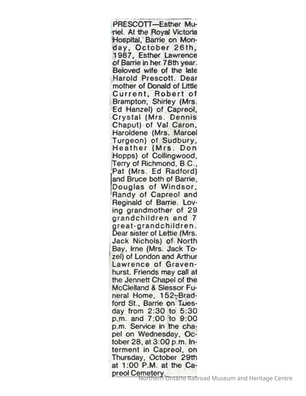 Document, Obituary, Esther Prescott.Collection