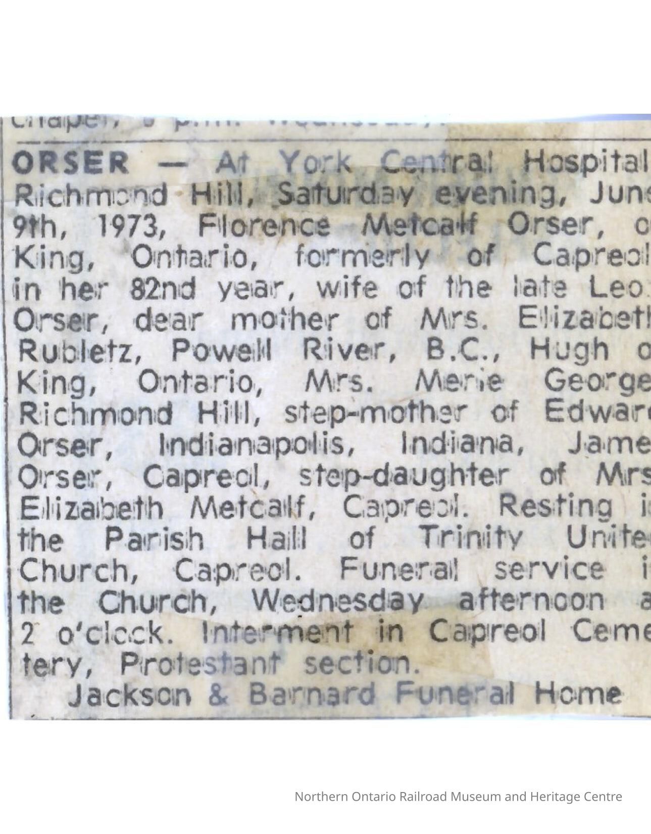 Document, Obituary, Florence Metcalf.Collection