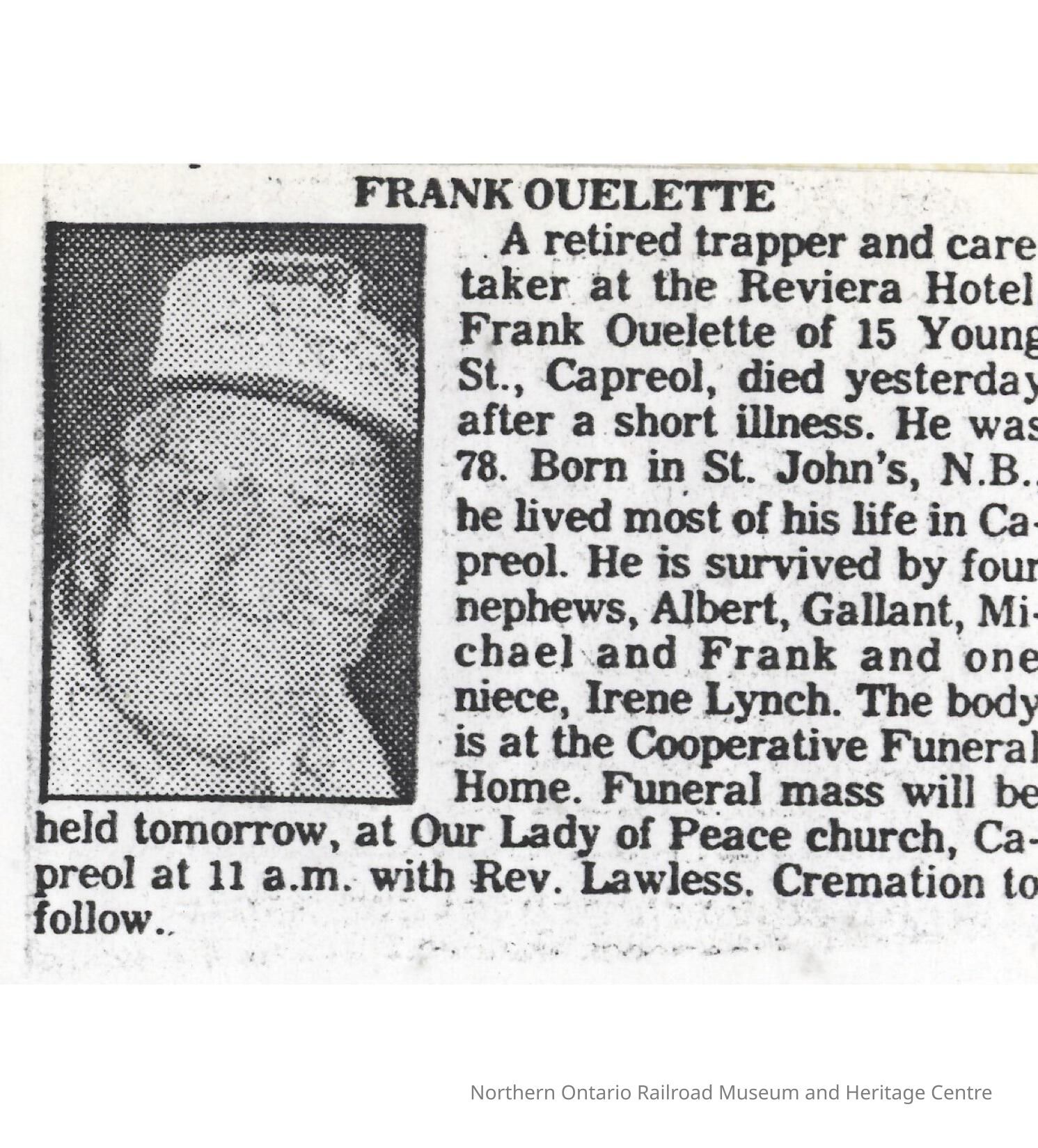 Document, Obituary, Frank Ouelette.Collection