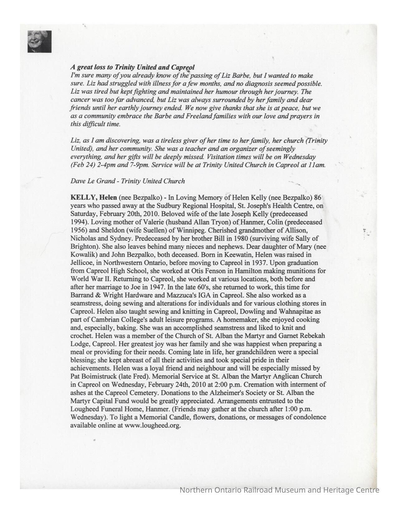 Document, Obituary, Hellen Kelly Bezpalko.Collection