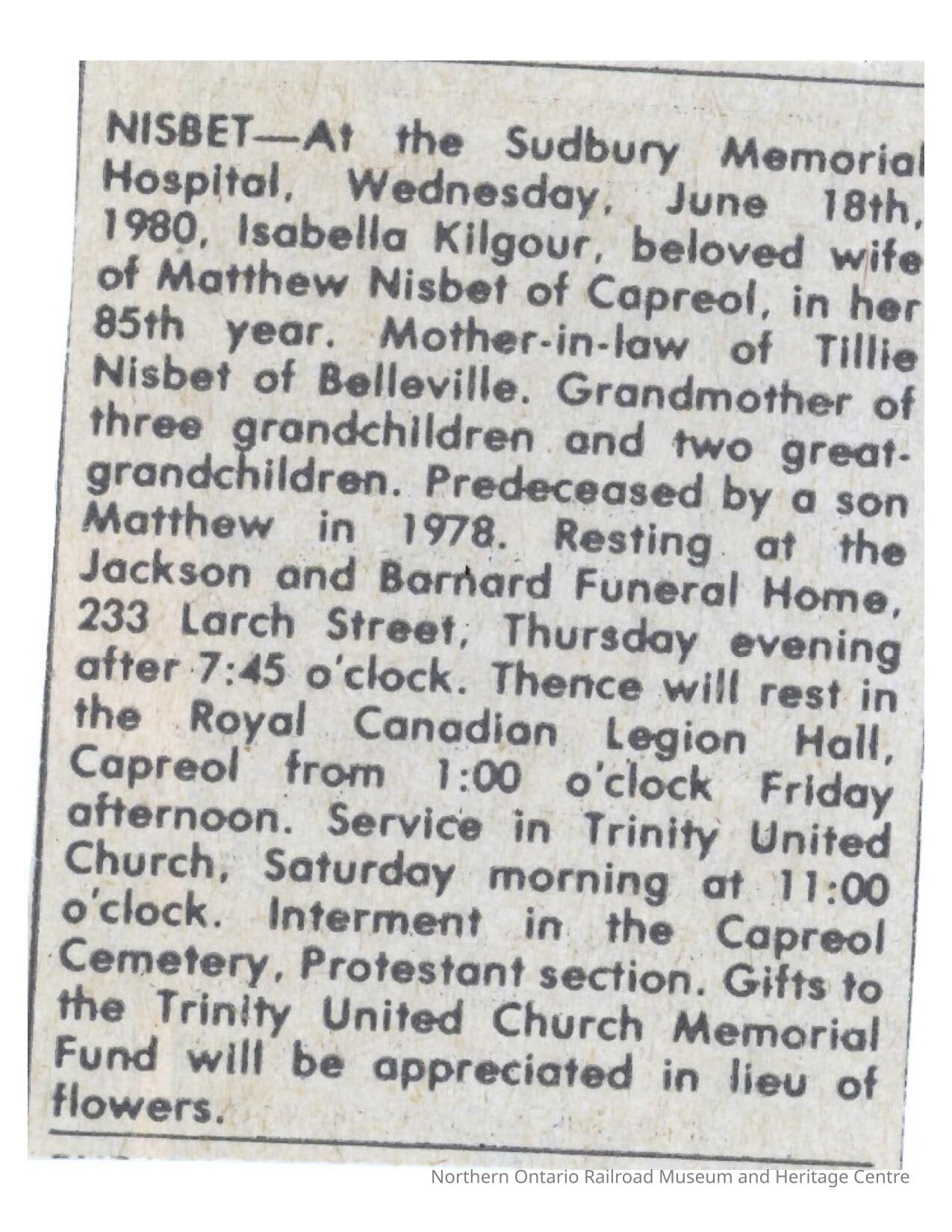 Document, Obituary, Isabella Kilgour Nisbet.Collection
