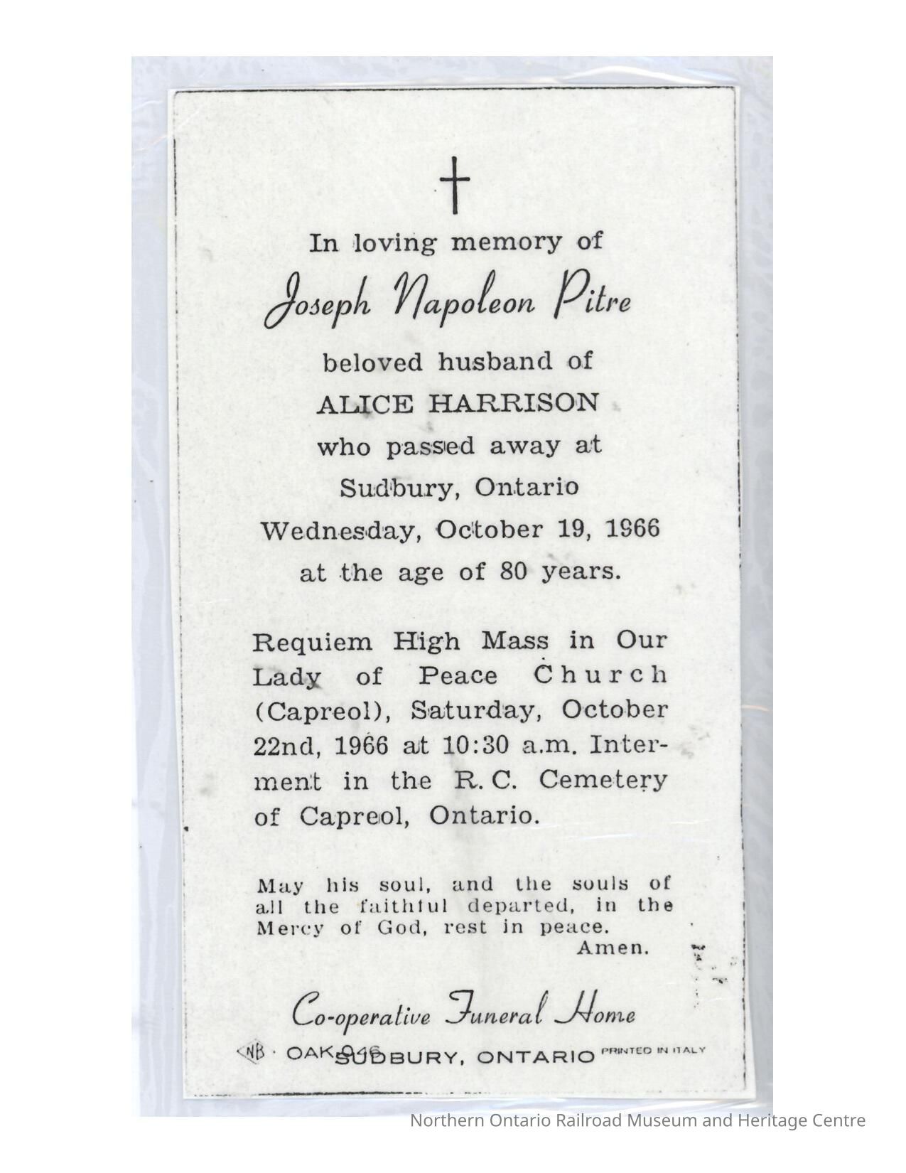Document, Obituary, Joseph Napoleon Pitre.Collection