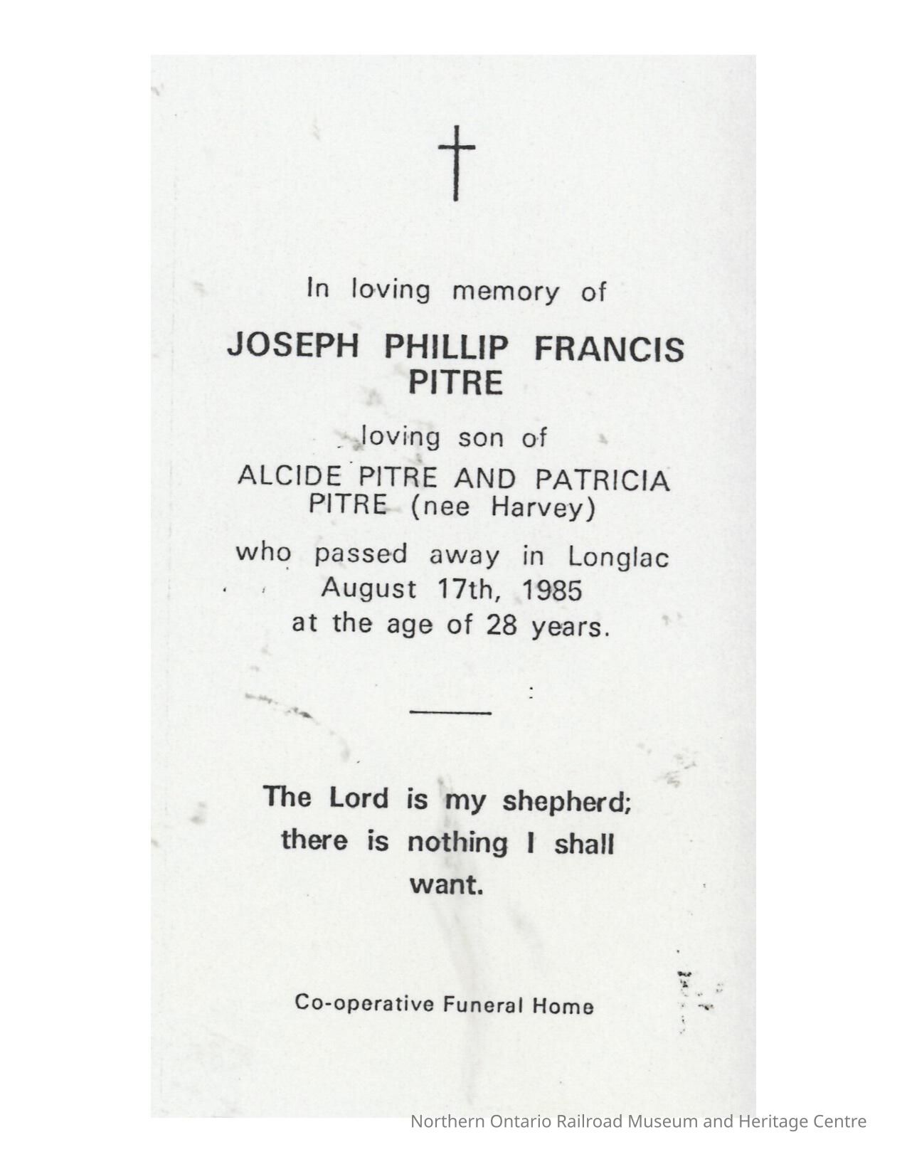 Document, Obituary, Joseph Phillip Francis Pitre.Collection