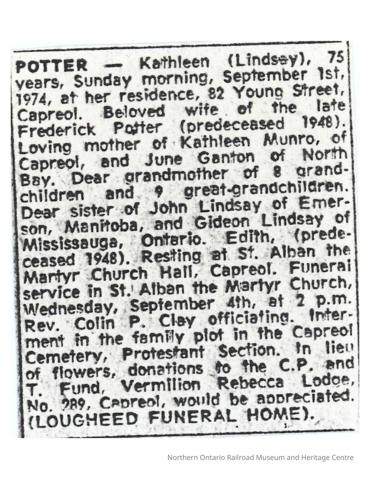 Document, Obituary, Kathleen Potter.Collection