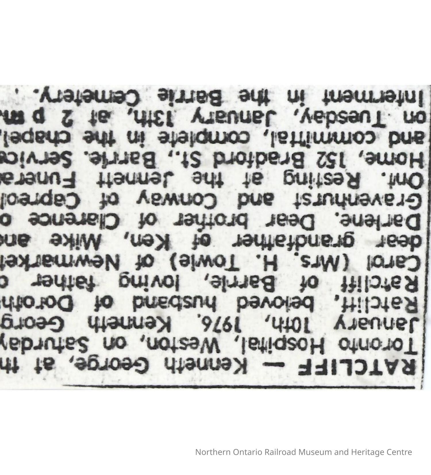 Document, Obituary, Kenneth Ratcliff.Collection