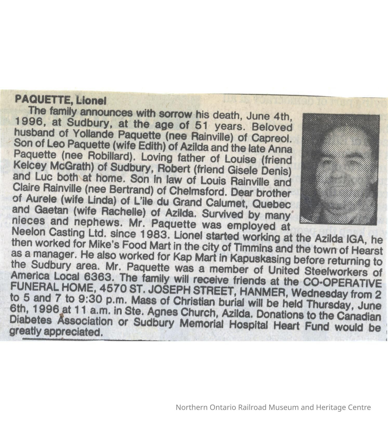 Document, Obituary, Lionel Paquette.Collection