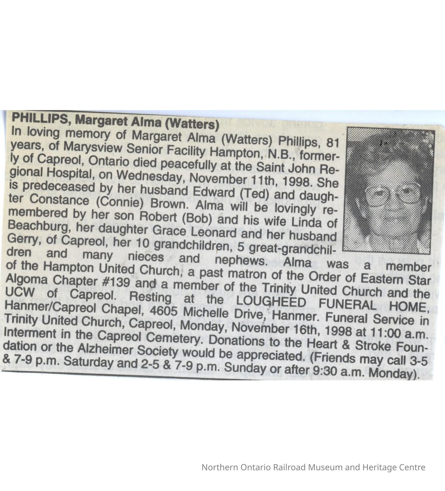 Document, Obituary, Margaret Alma Phillips.Collection