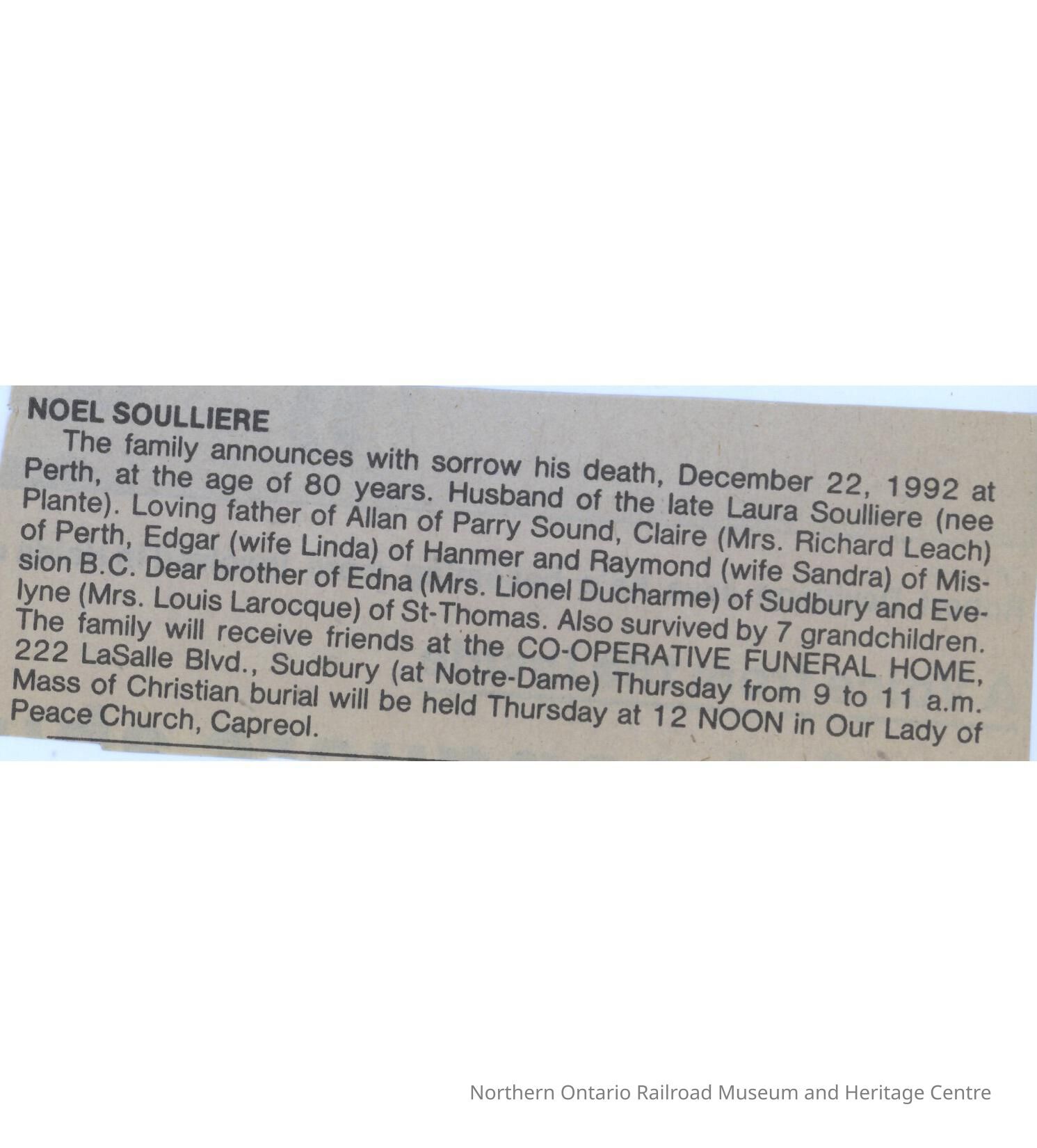 Document, Obituary, Noel SoulliereCollection