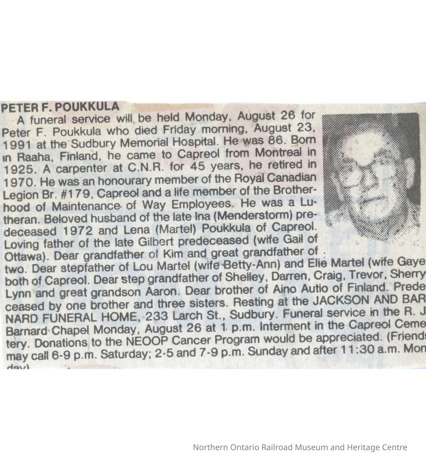 Document, Obituary, Peter F. Poukkula.Collection