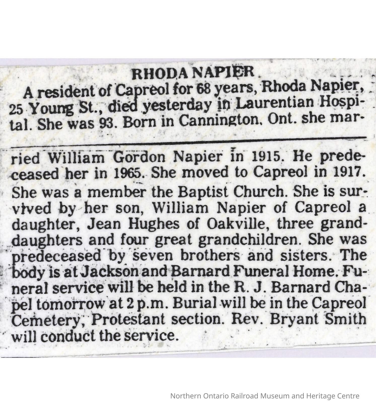 Document, Obituary, Rhoda Napier.Collection