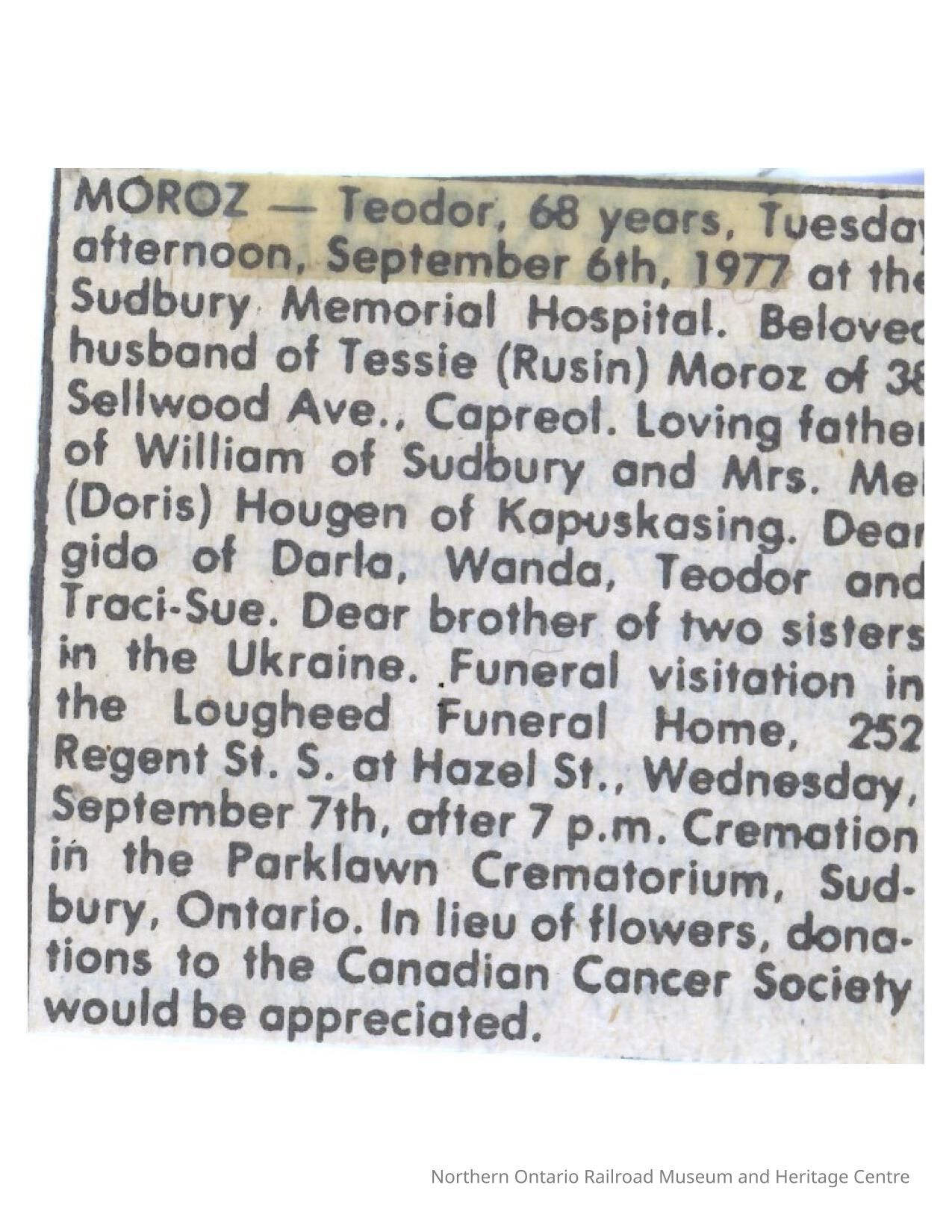 Document, Obituary, Tessie (Rusin) Moroz.Collection