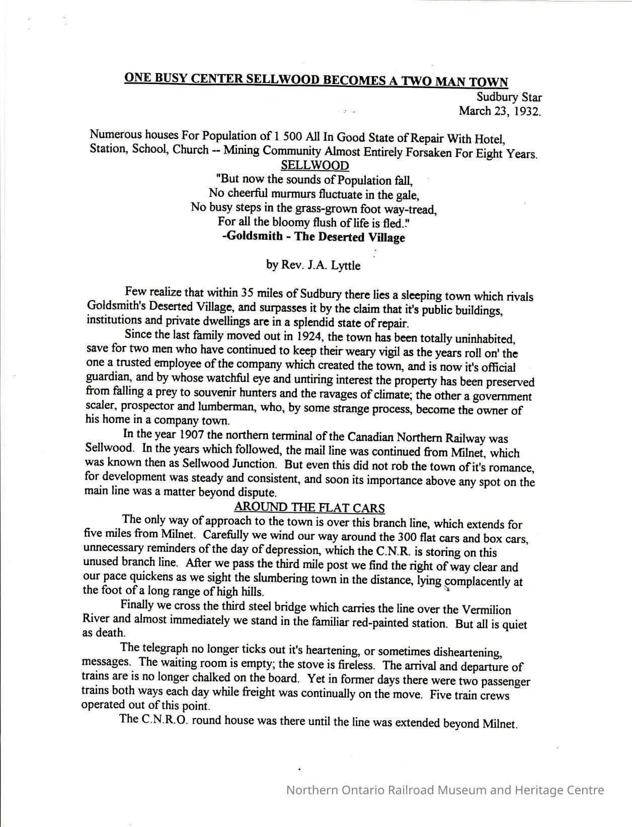 A news article about the history of the ghost-town of Sellwood and its decline to only two residents.Creator