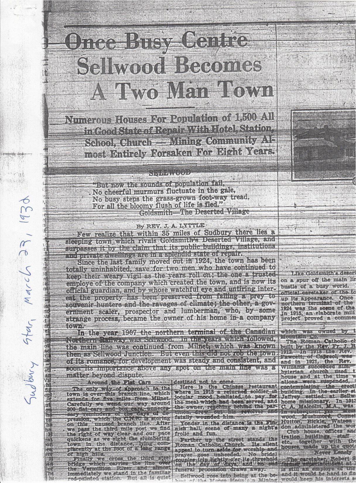A news article about the history of the ghost-town of Sellwood and its decline to only two residents.