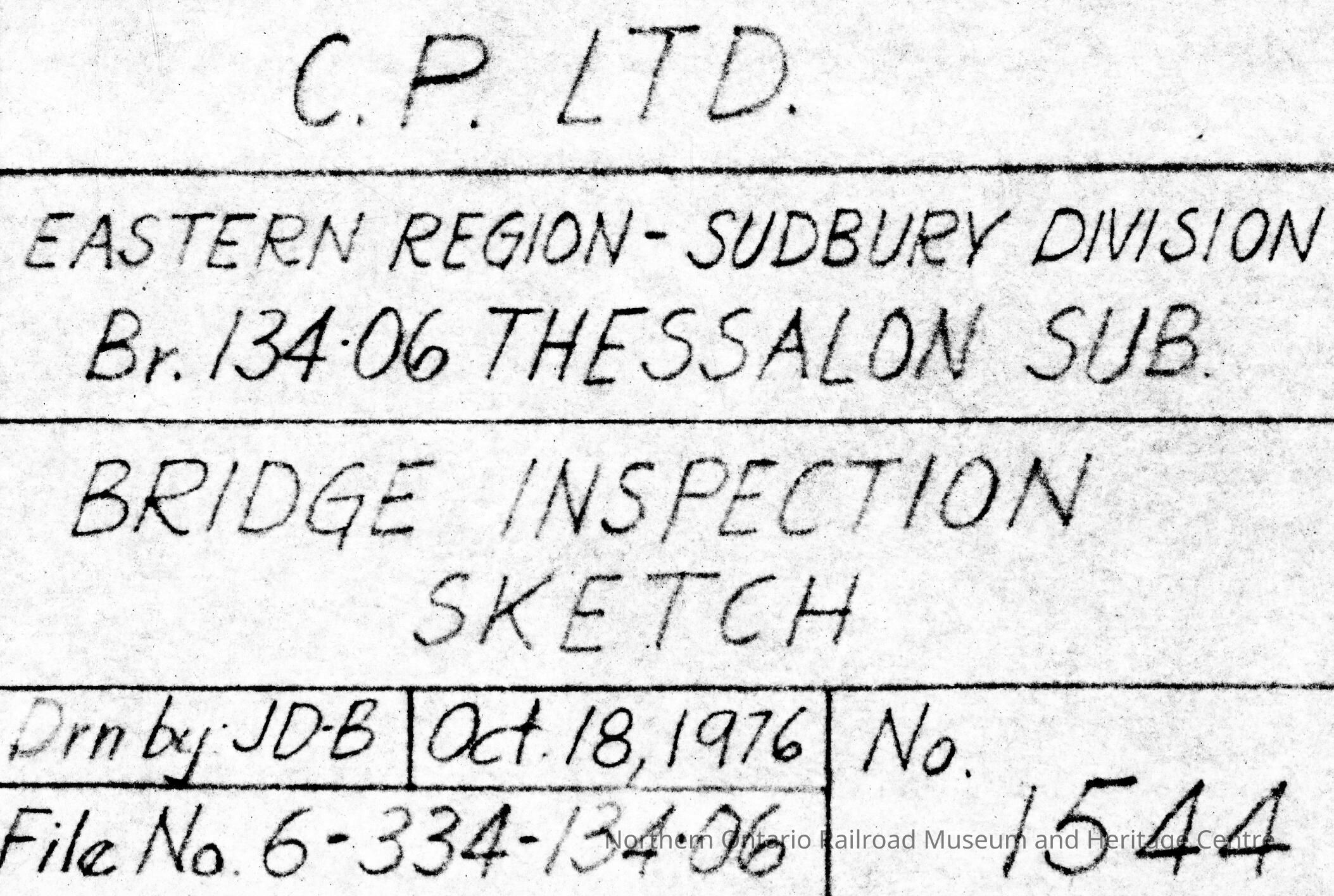 Document, Plan, Canadian Pacific Railway, Eastern Region, Sudbury Division, Thessalon Subdivision, Bridge 134.06, February 20th 1975.Collection