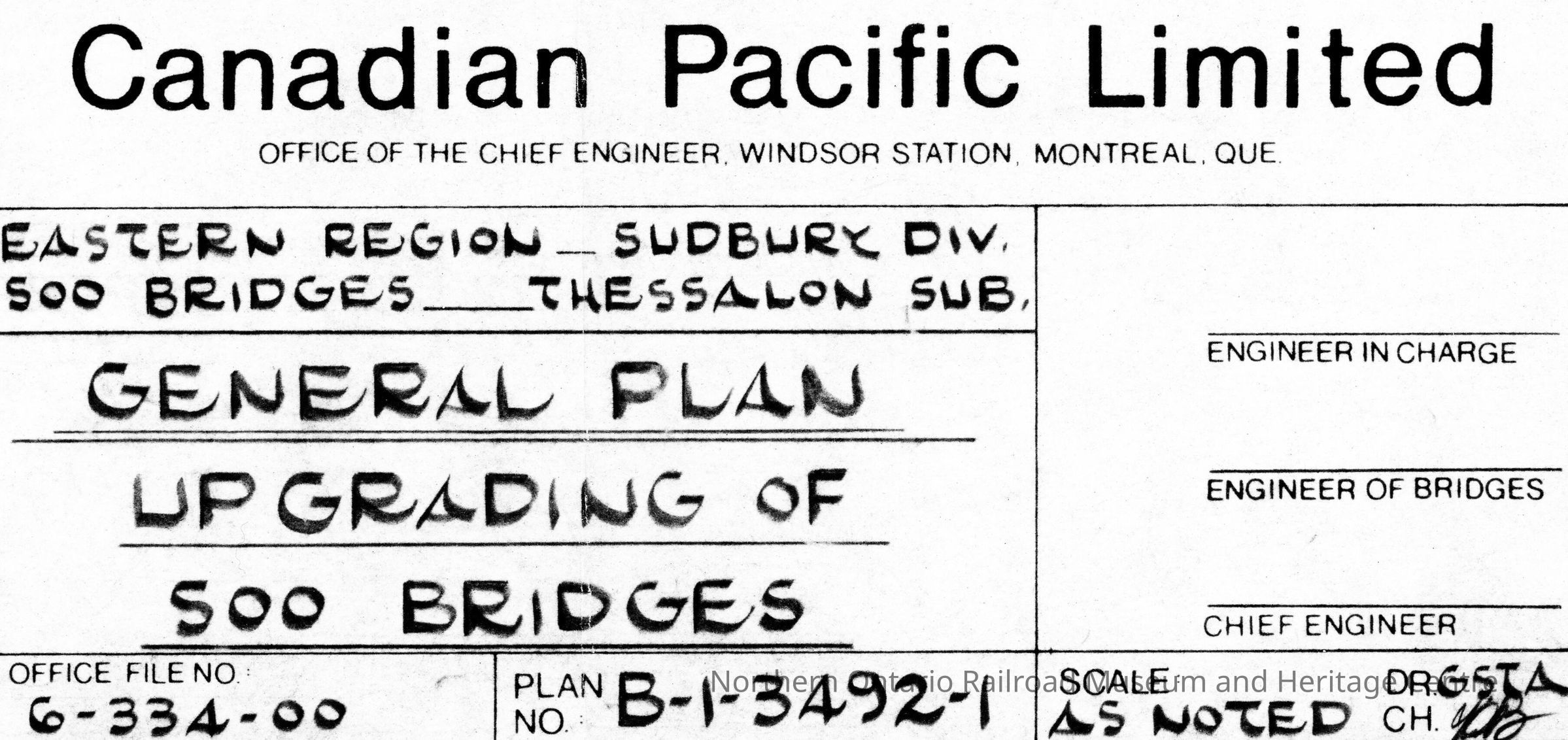Document, Plan, Canadian Pacific Railways, Eastern Region, Sudbury Division, Soo Bridges, Thessalon Subdivision, General Plan Upgrading of Soo Bridges.Collection