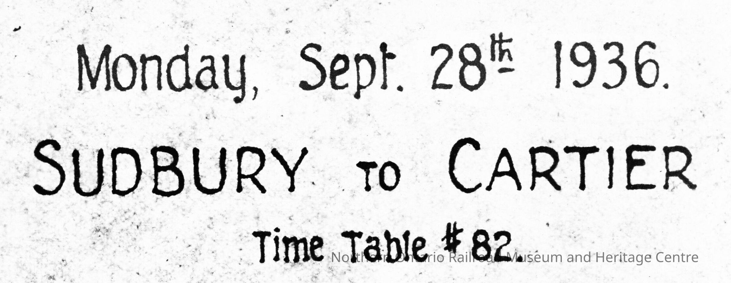 Document, Plan, Monday September 28th 1936, Sudbury to Cartier.Collection