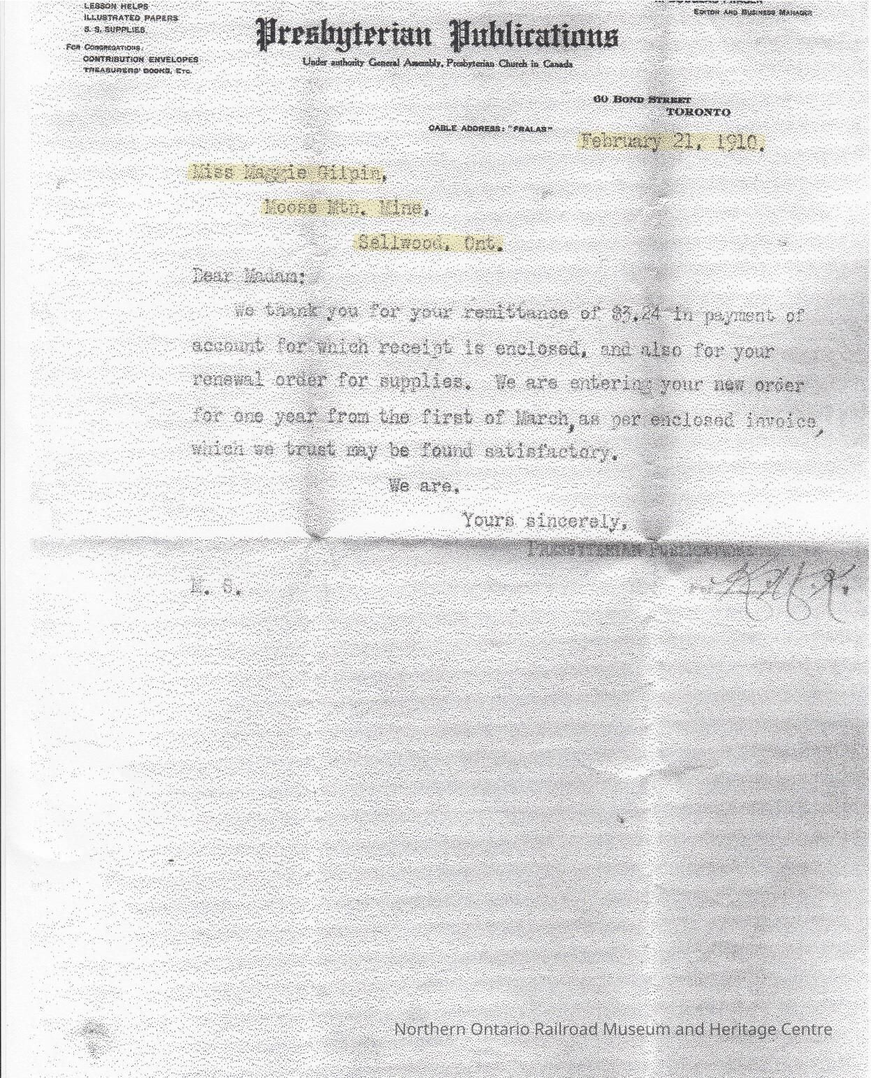Document- Presbyterian Publications Letter to Maggie GilpinCollection