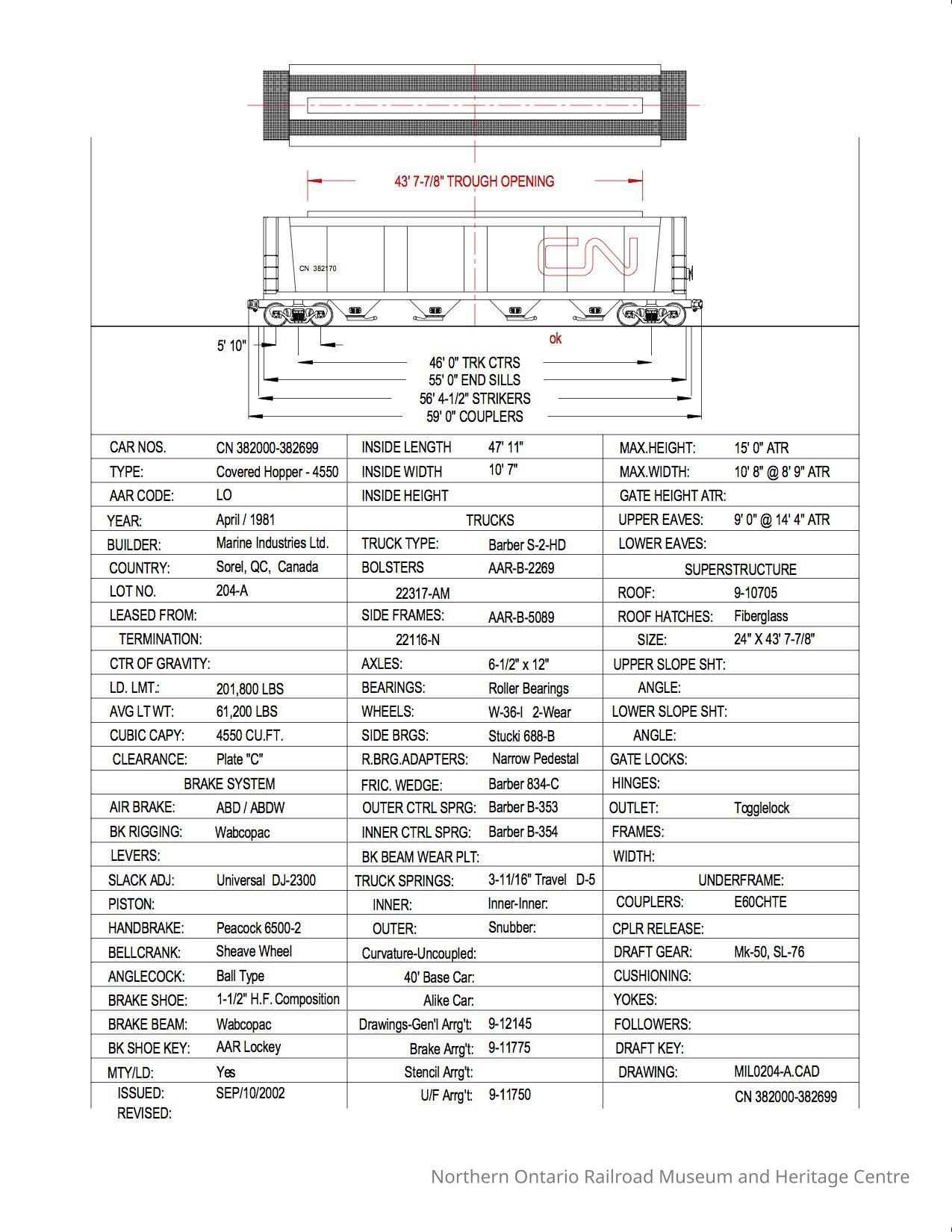 Document, Rolling Stock Plan, Canadian National Railway, CN382000-382699.Collection