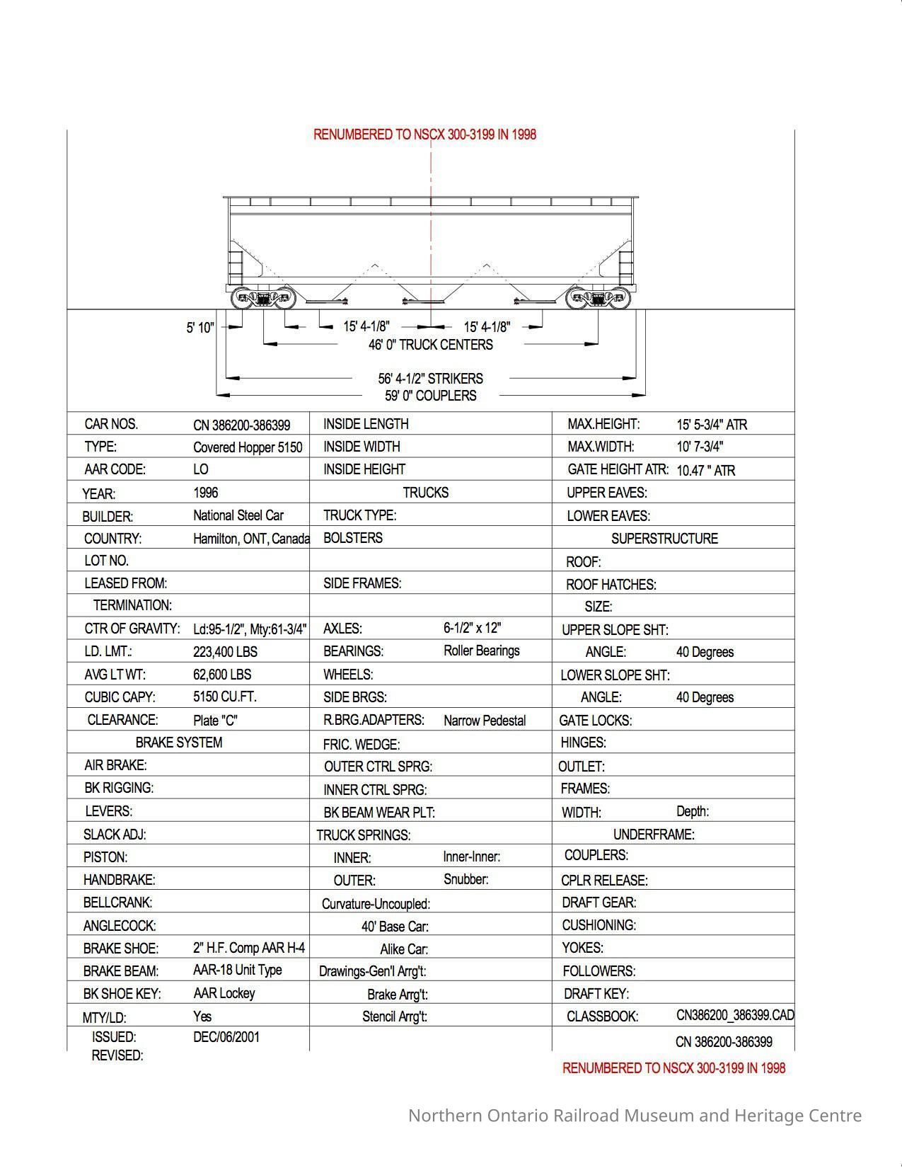 Document, Rolling Stock Plan, Canadian National Railway, CN386200-386399.Collection