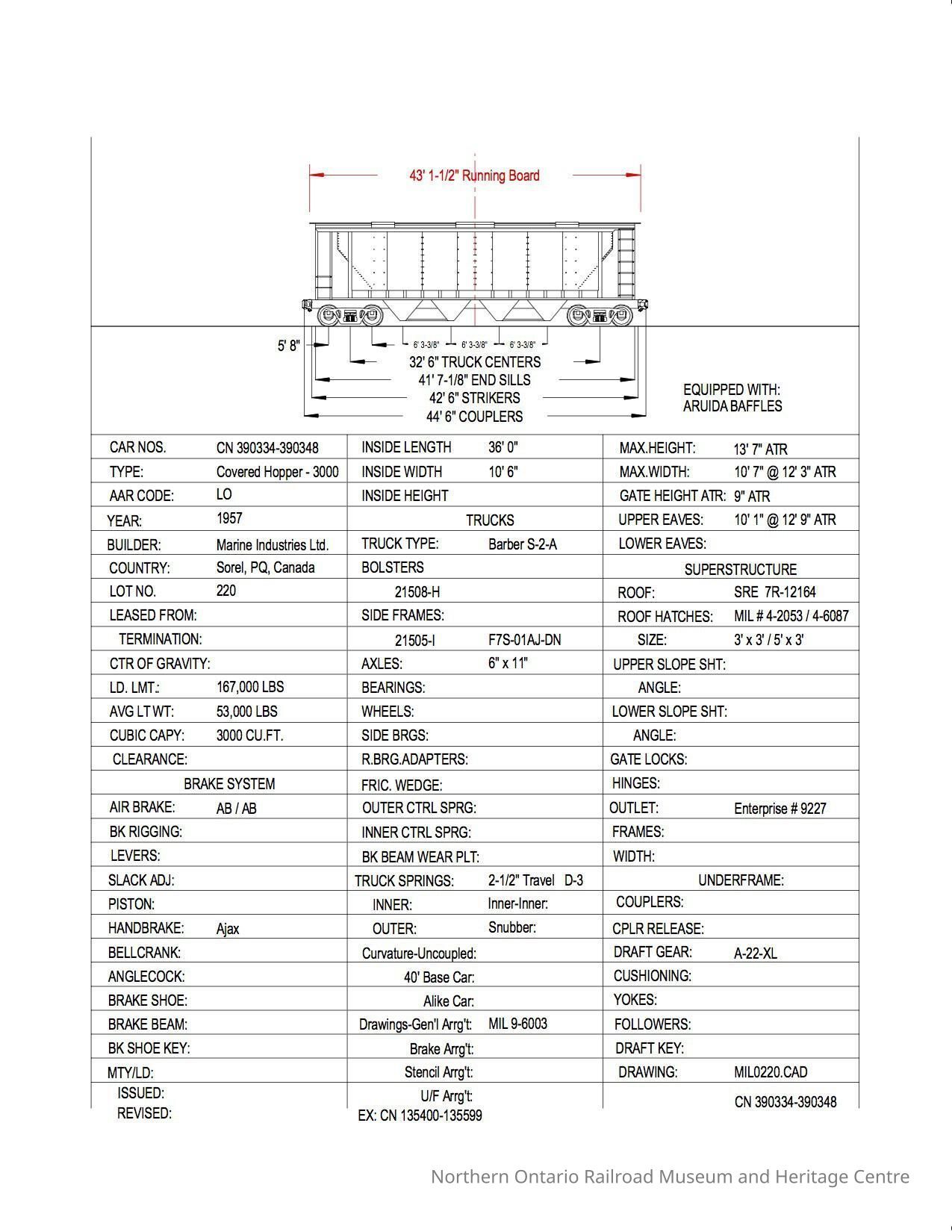 Document, Rolling Stock Plan, Canadian National Railway, CN390334-390348.Collection