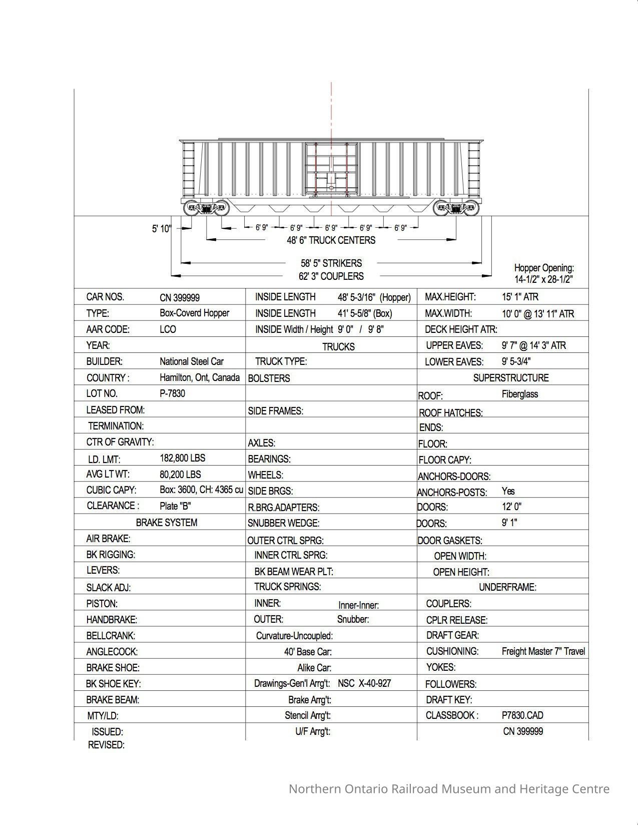 Document, Rolling Stock Plan, Canadian National Railway, CN399999.Collection