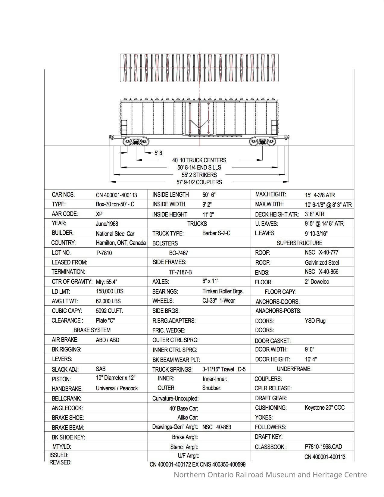 Document, Rolling Stock Plan, Canadian National Railway, CN400001-400113.Collection
