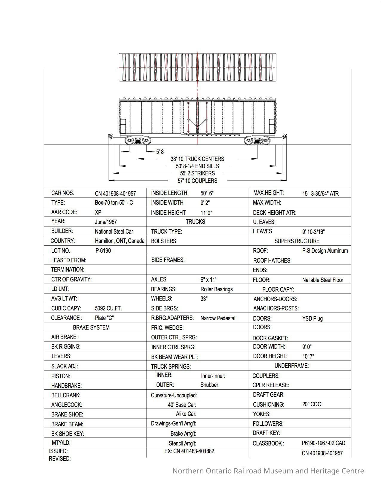 Document, Rolling Stock Plan, Canadian National Railway, CN401908-401957.Collection