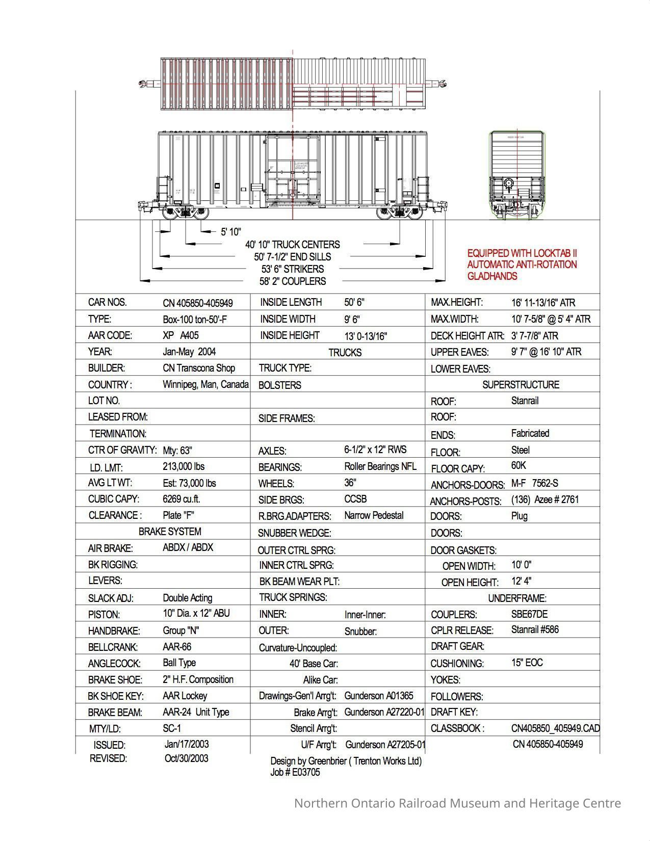 Document, Rolling Stock Plan, Canadian National Railway, CN405850-405949.Collection