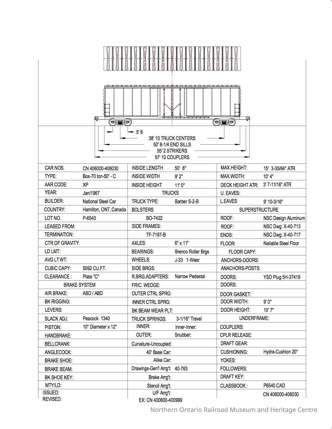 Document, Rolling Stock Plan, Canadian National Railway, CN406000-406030.Collection