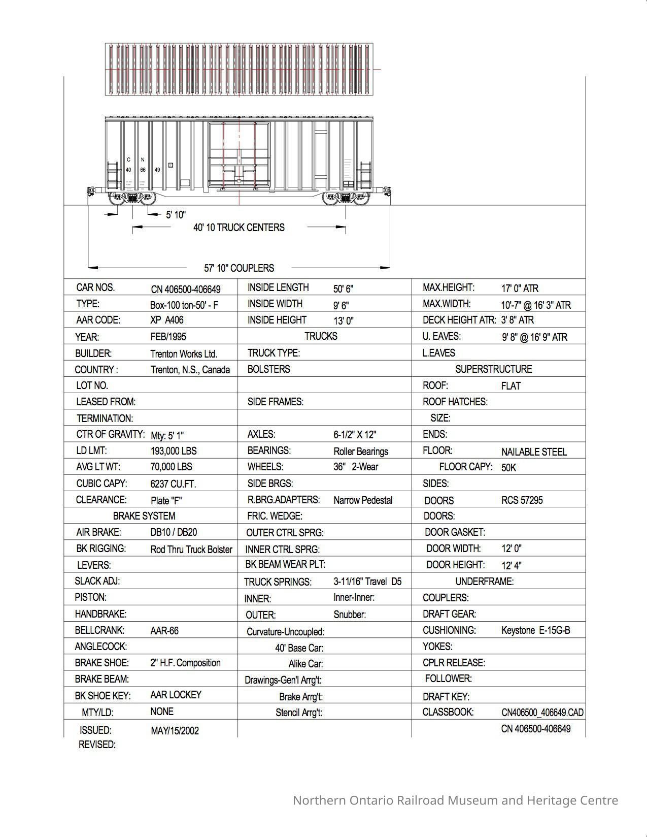 Document, Rolling Stock Plan, Canadian National Railway, CN406500-406649.Collection