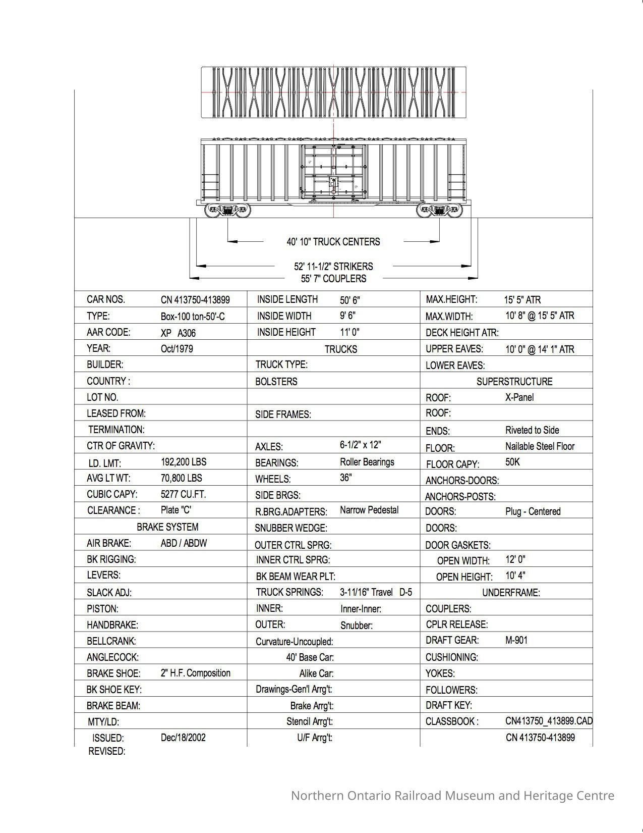 Document, Rolling Stock Plan, Canadian National Railway, CN413750-413899.Collection