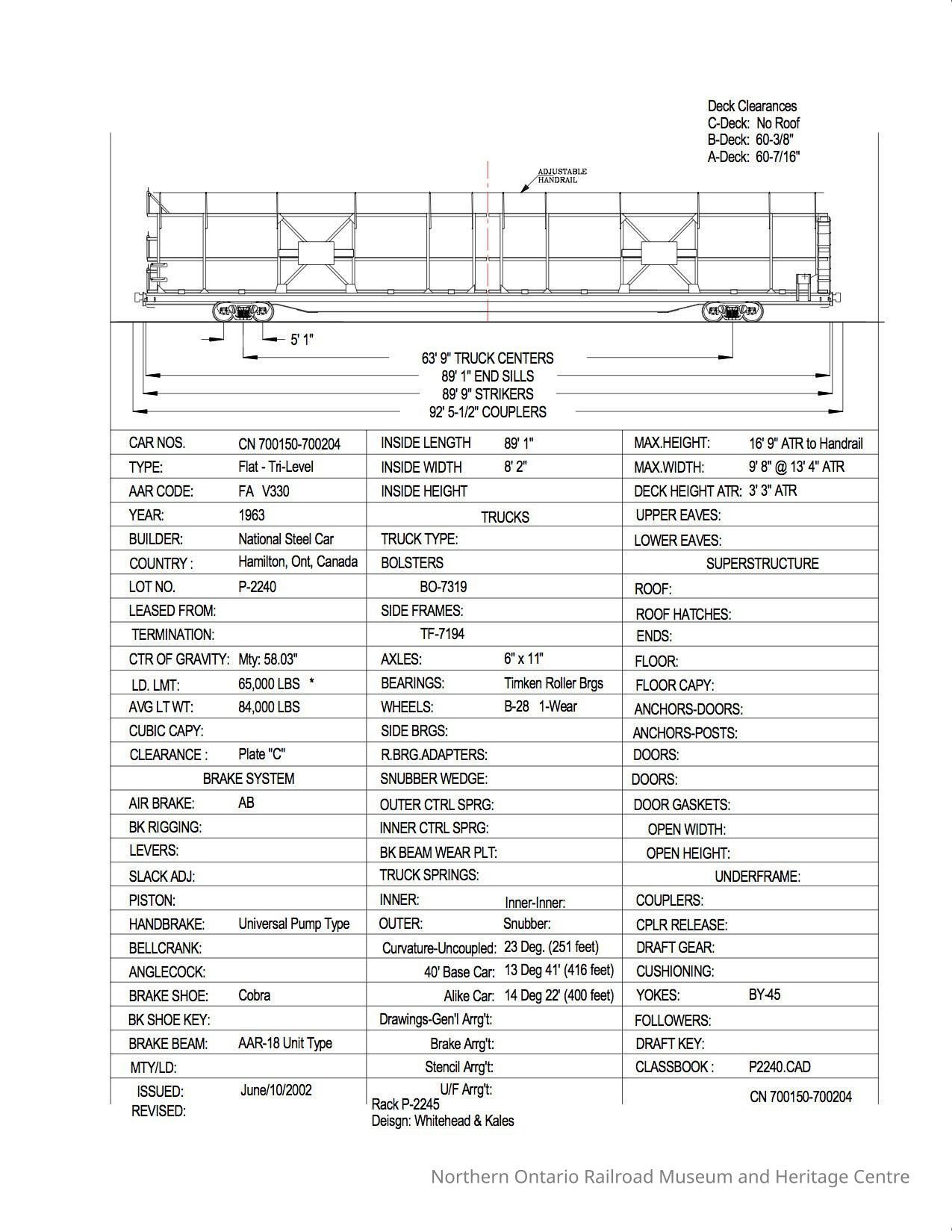 Document, Rolling Stock Plan, Canadian National Railway, CN700150-700204.Collection