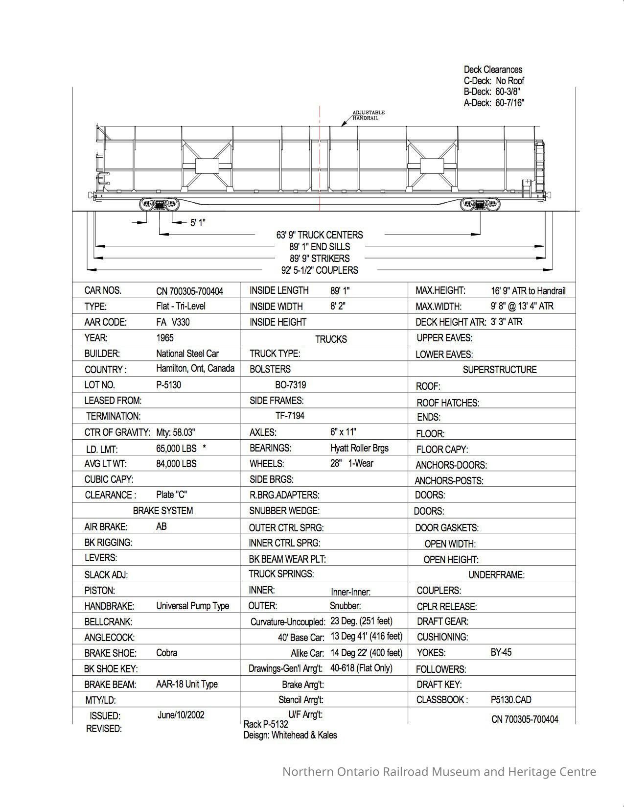 Document, Rolling Stock Plan, Canadian National Railway, CN700305-700404.Collection