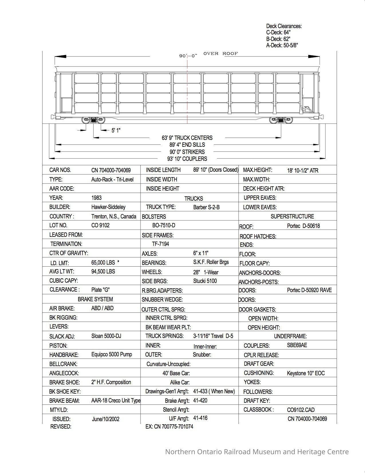 Document, Rolling Stock Plan, Canadian National Railway, CN704000-704069.Collection