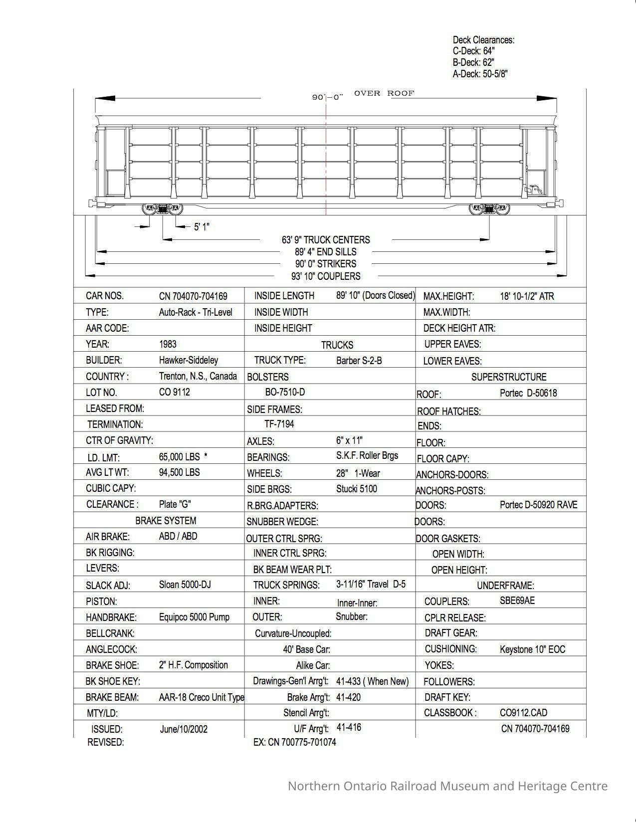 Document, Rolling Stock Plan, Canadian National Railway, CN704070-704169.Collection