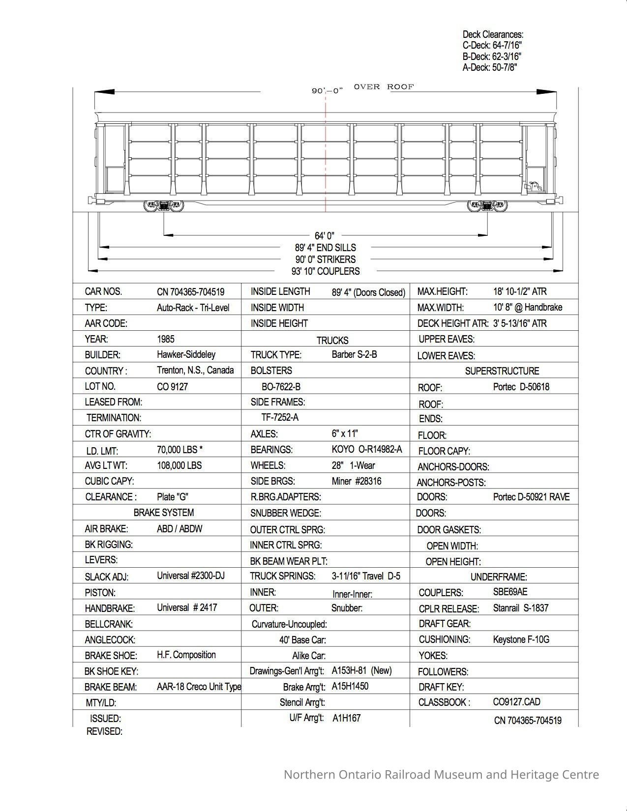 Document, Rolling Stock Plan, Canadian National Railway, CN704365-704519.Collection