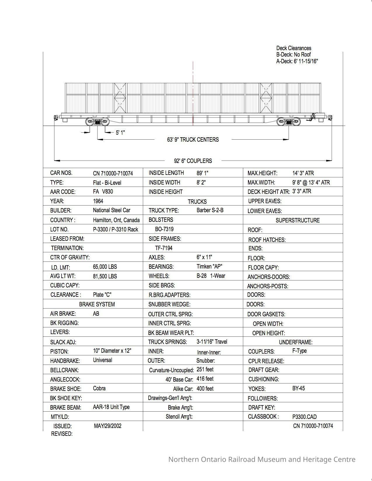 Document, Rolling Stock Plan, Canadian National Railway, CN710000-710074.Collection
