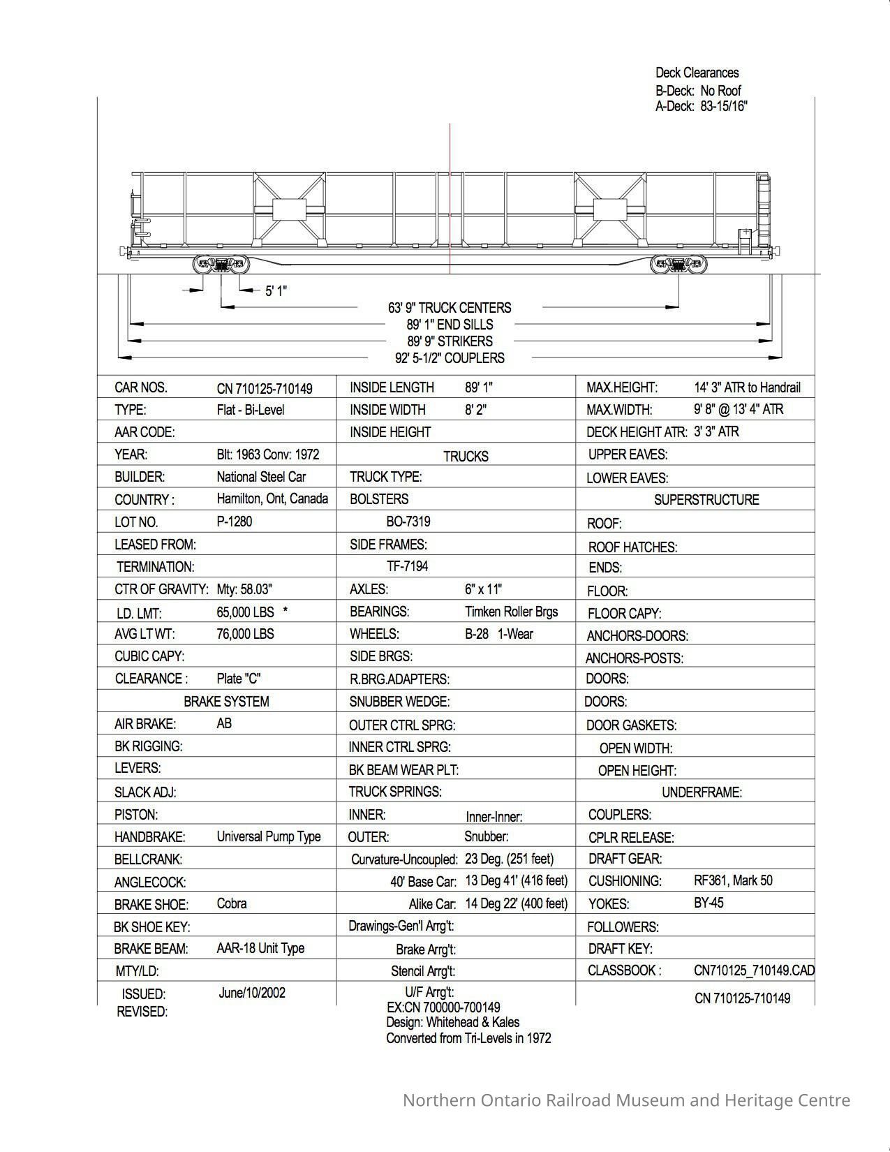 Document, Rolling Stock Plan, Canadian National Railway, CN710125-710149.Collection