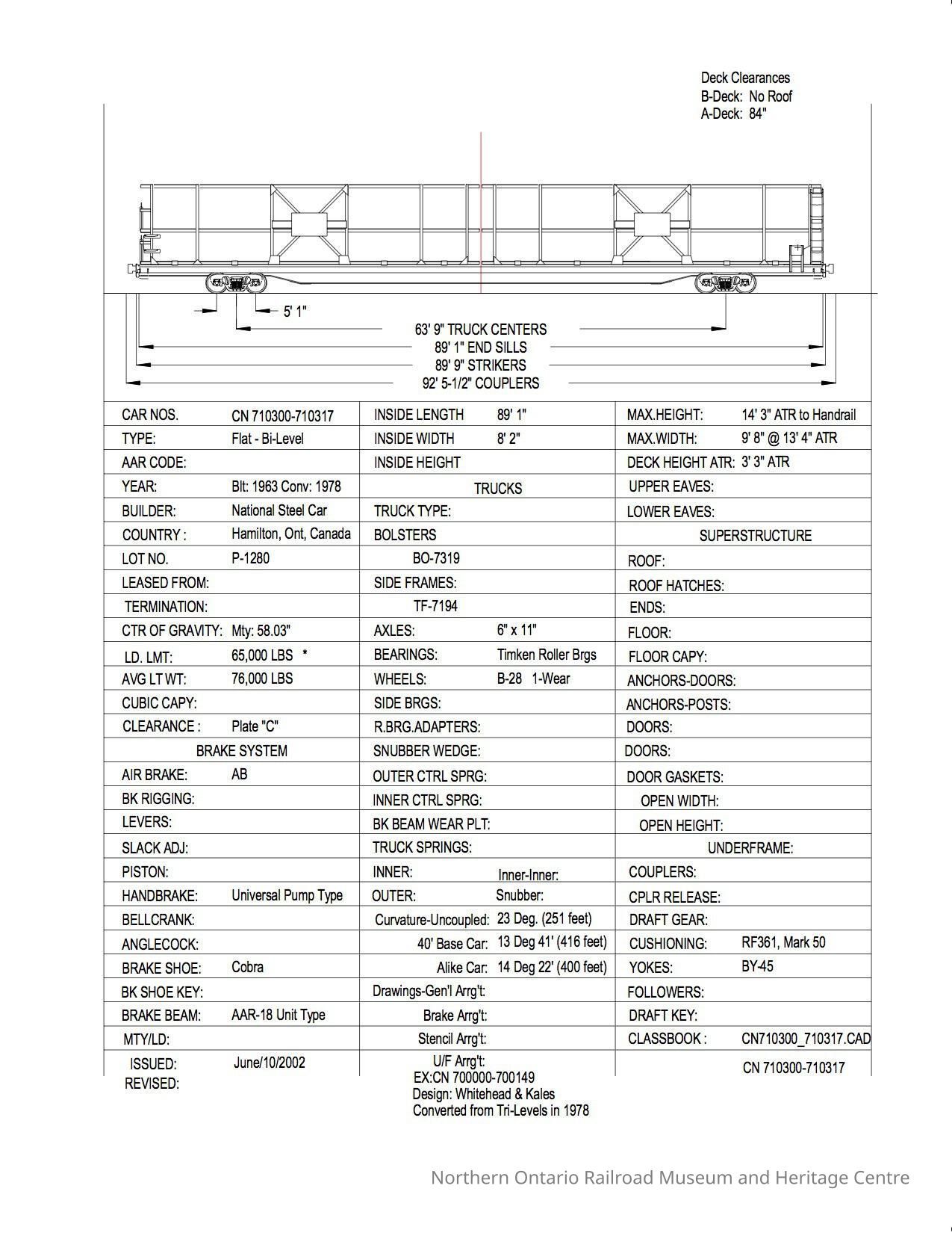 Document, Rolling Stock Plan, Canadian National Railway, CN710300-710317.Collection