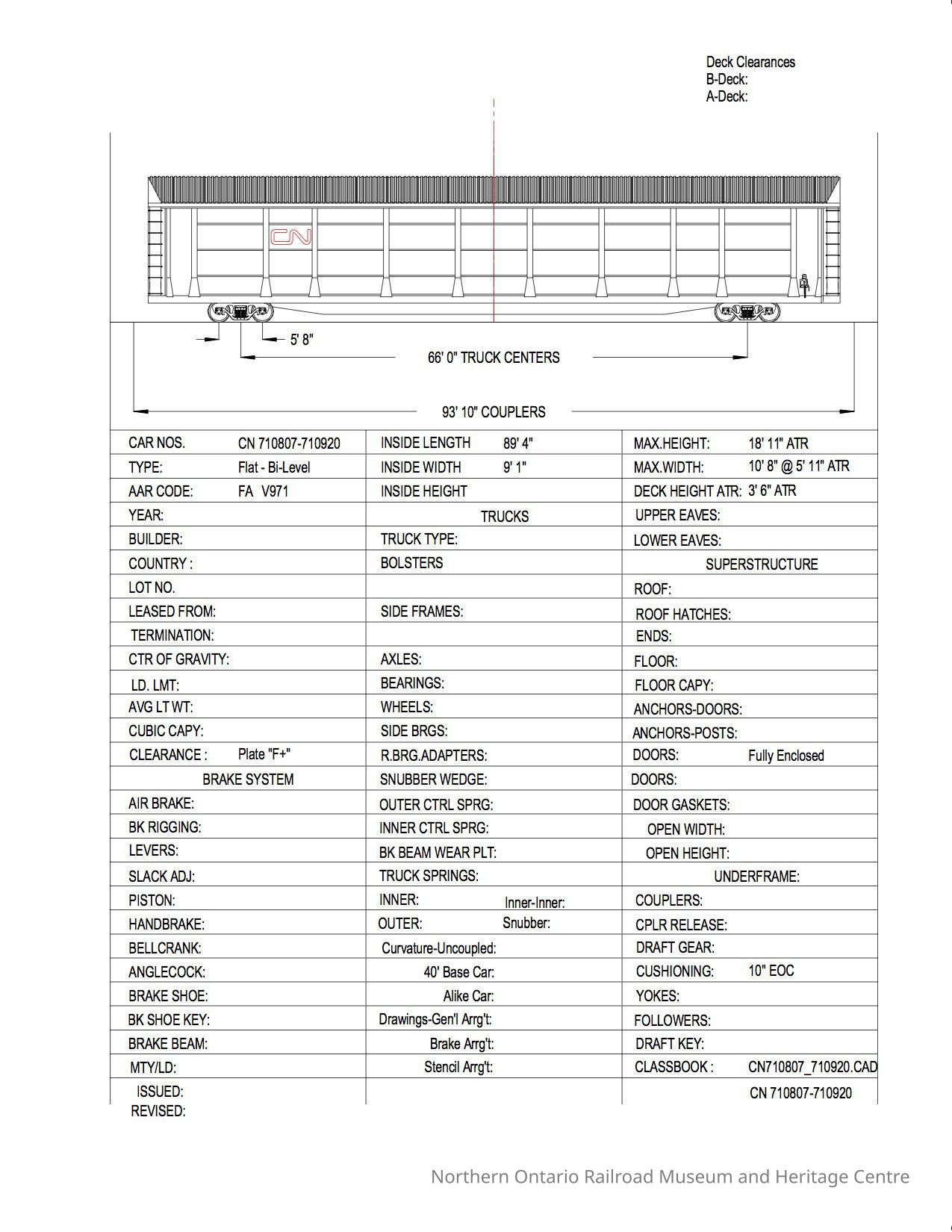 Document, Rolling Stock Plan, Canadian National Railway, CN710807-710920.Collection