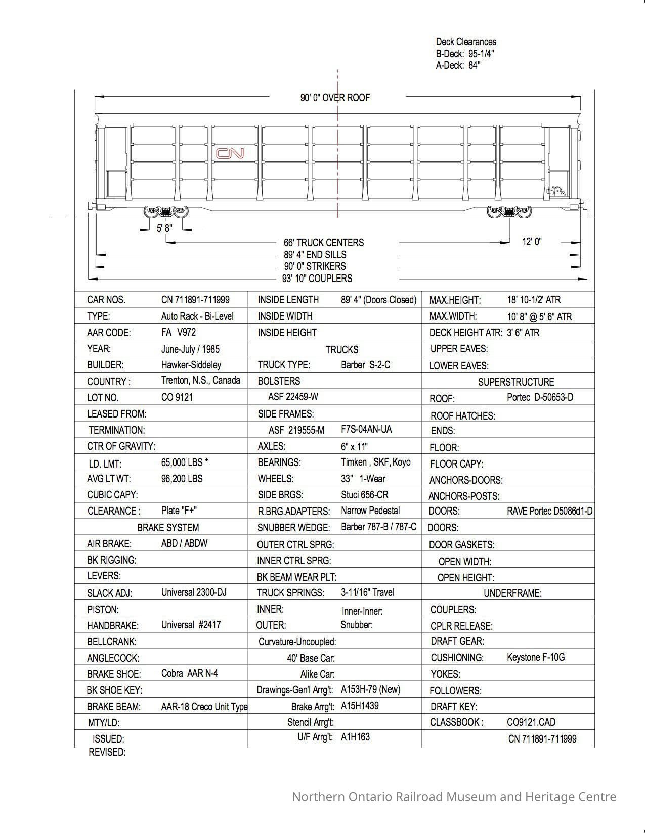Document, Rolling Stock Plan, Canadian National Railway, CN711891-711999.Collection